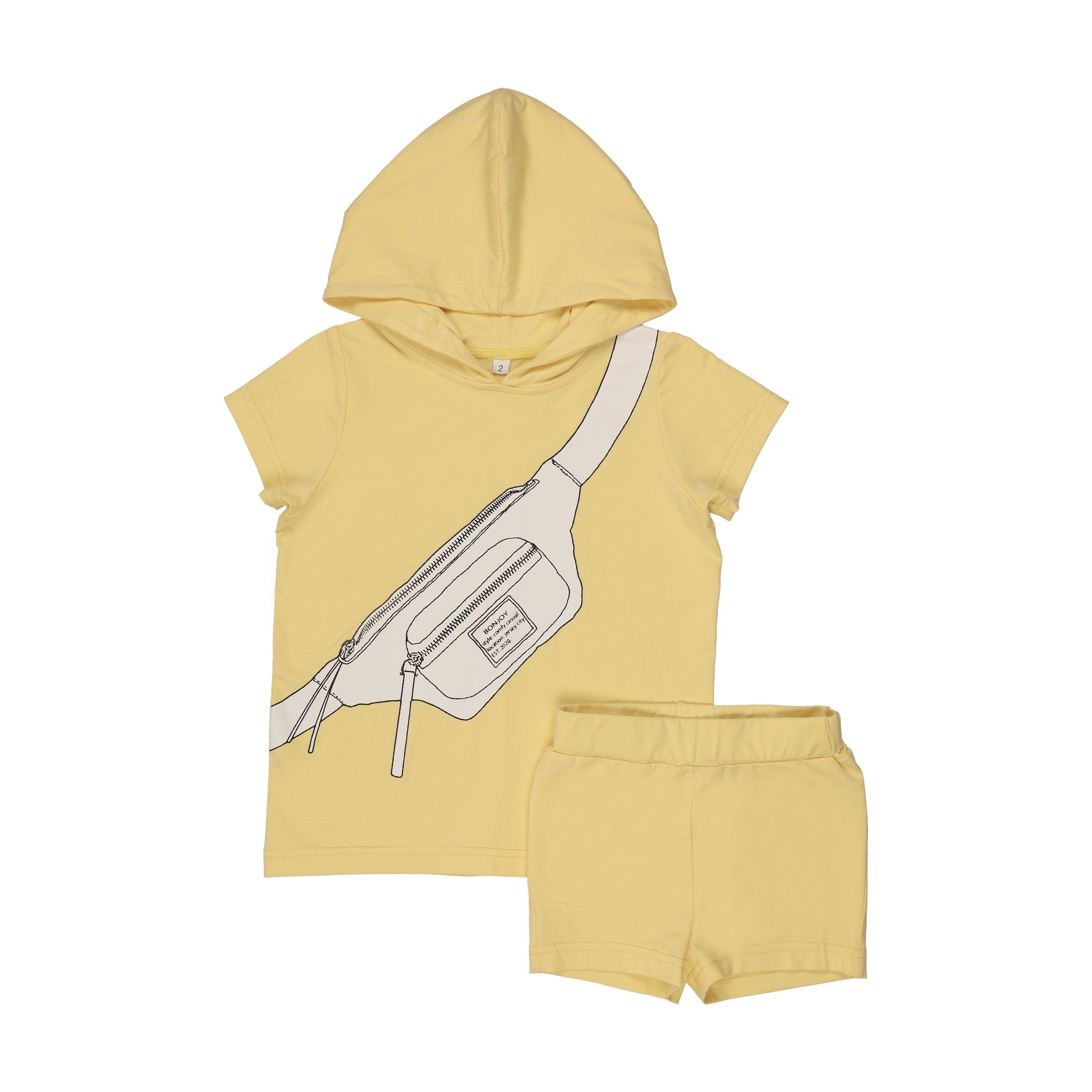Printed Fanny Pack Hooded Short Sleeve Set